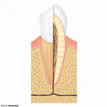 Camada rígida, delgada e translúcida, de substância calcificada que reveste e protege a dentina da coroa do dente. É a substância mais dura do corpo e é quase que completamente composta de sais de cálcio. Ao microscópio, é composta de bastões delgados (prismas do esmalte) mantidos conectados por uma substância cimentante, e apresenta-se revestido por uma bainha de esmalte. (Tradução livre do original