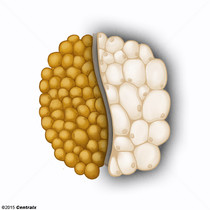 Tecido adiposo composto por adipócitos brancos, geralmente encontrado logo abaixo da pele (GORDURA SUBCUTÂNEA) e ao redor dos órgãos internos (GORDURA ABDOMINAL). Possui uma menor vascularização e menos coloração que a gordura marrom. A gordura branca fornece isolamento térmico, amortecimento mecânico e fonte de energia.